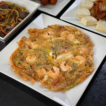 Assorted seafood stew with soft bean curd. Choice of mild or spicy.