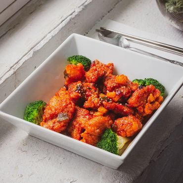 Bonesless chicken slice, battered and deep fried, tossed in a sweet spicy sauce.